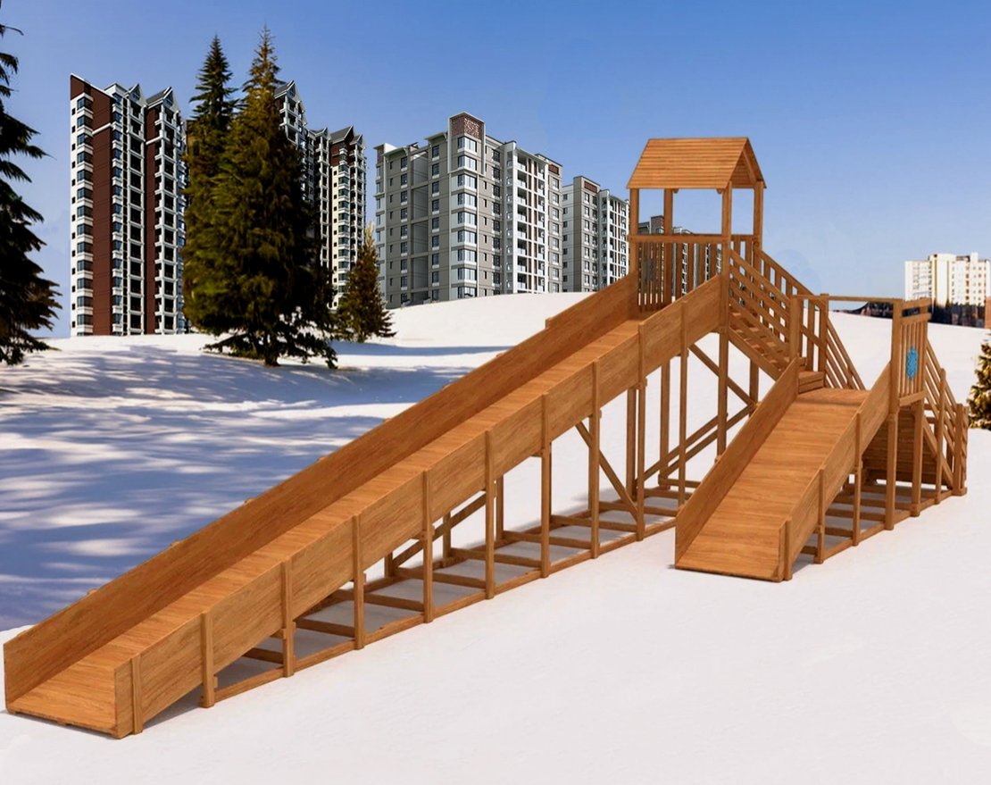 Зимняя заливная горка будет прекрасным дополнением детской площадки, городского парка, приусадебного участка.