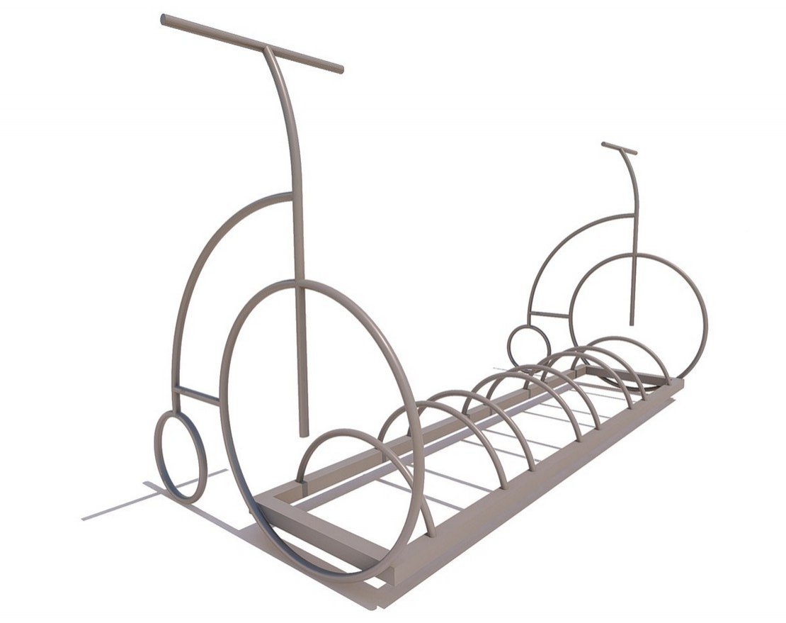 Велопарковка «Пенни» для общественных пространств поможет сделать стоянку велосипедов компактной и упорядоченной, предотвратит кражи и станет гармоничной частью городского ландшафта. Велопарковка имеет устойчивую конструкцию, что исключает случайное падение. Оригинальная особенность модели — декоративные боковые стойки. Они выполнены в форме пенни-фартингов — старинных велосипедов с огромным передним колесом и крохотным задним.