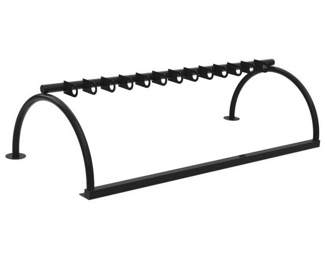 Небольшая надёжная парковка для самокатов актуальна в парках, возле детских площадок, у дошкольных и школьных учреждений. Конструкция изготовлена из профильной стали, покрыта порошковой полимерной краской.